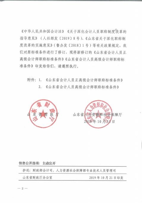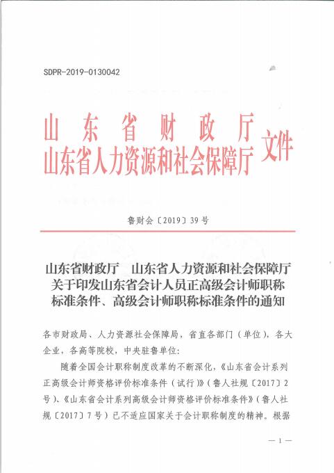 关于印发山东省会计人员正高级会计师职称标准条件、高级会计师职称标准条件的通知