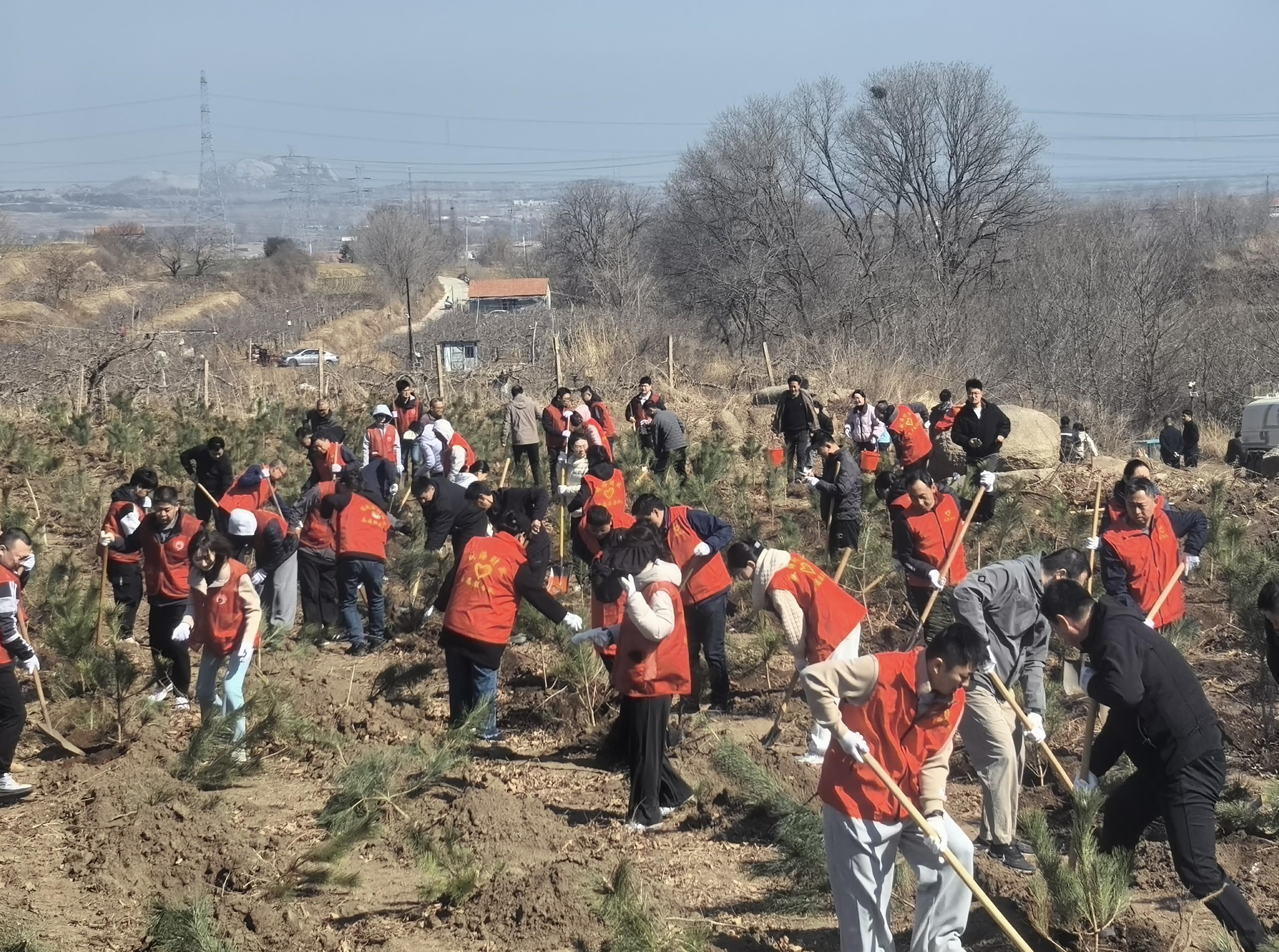 活动现场,大家三五成群、分工协作,扶苗填坑、提水浇灌,各个环节衔接有序、配合默契,百余棵树苗在春风中昂然挺立,为初春大地增添了勃勃生机。